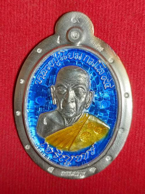 เหรียญหลวงปู่จื่อ พันธมุตโต เนื้อนวะ ลงยาจีวร ตอก 9 รอบ ฝังพลอยนพเก้า (พิมพ์ห่มคลุม) รุ่น "ชนะจน" วัดเขาตาเงาะอุดมพร จังหวัดชัยภูมิ |