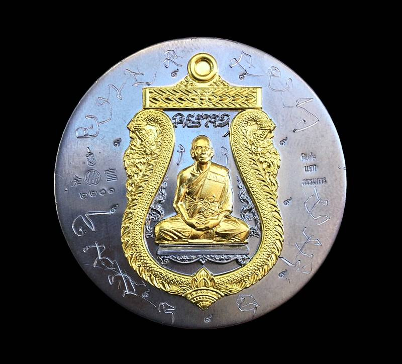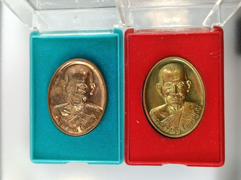 เหรียญรุ่นแรก หลวงพ่อทอง วัดพระพุทธบาทเขายายหอม จ.ชัยภูมิ ปี 2554 บล็อคทองคำ เนื้อทองแดง |