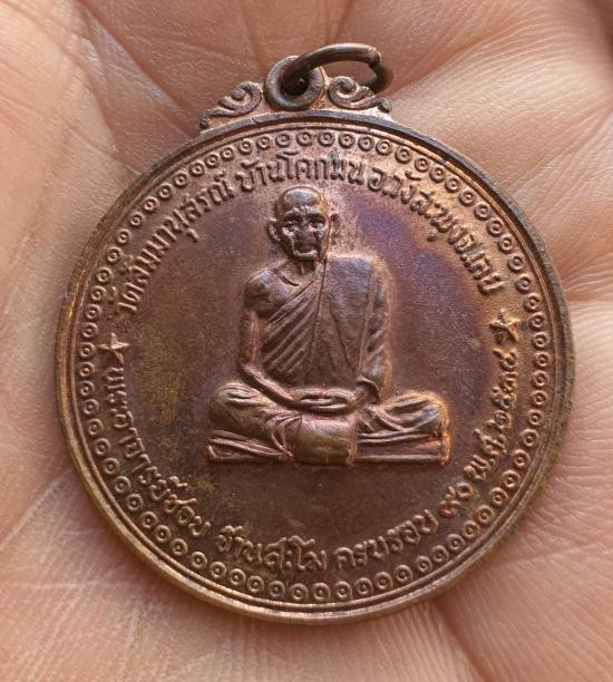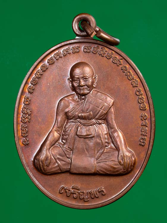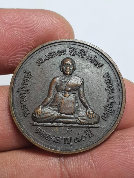 เหรียญ"ครบรอบ 90 ปี" หลวงปู่ชอบ วัดป่าสัมมานุสรณ์ จ.เลย ปี 2534 เนื้อทองแดงผิวไฟ |
