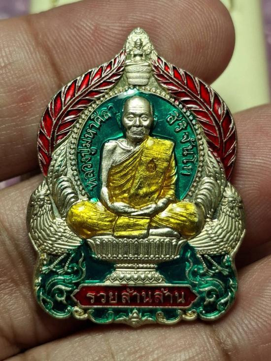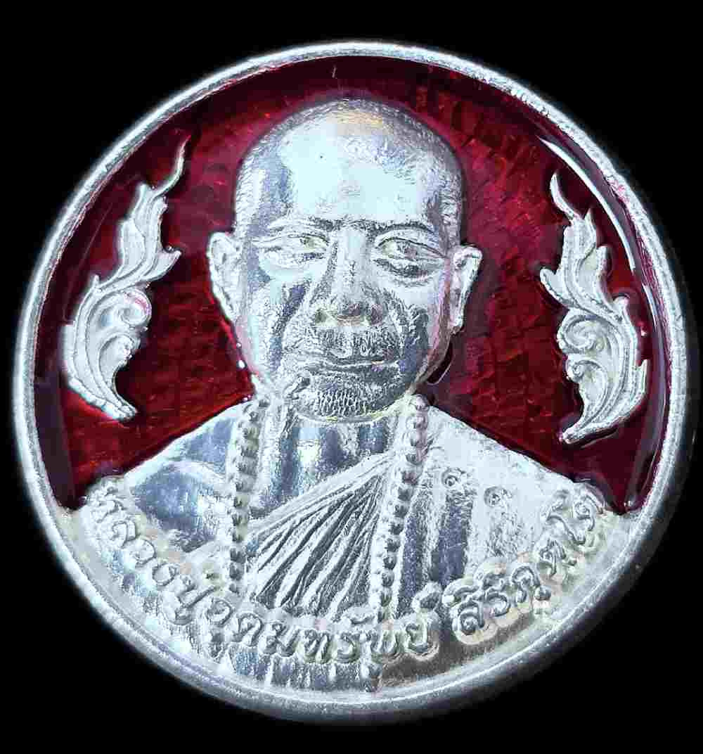 เหรียญรวย รวย รวย เนื้อเงินลงยาแดง ตอกโค้ดเลข 99 พร้อมกล่องเดิม หลวงปู่อุดมทรัพย์(จ่อย)วัดมุจรินทร์ ศรีษะเกษ สวยๆเดิมๆ รับประกันพระแท้ตลอดชีพ |
