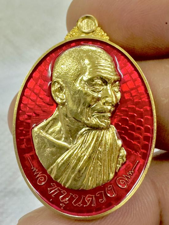 *** เคาะเดียวแดง*** เหรียญ หนุนดวง หลวงปู่มหาศิลา สิริจันโท เนื้อทองลำอู่ ชุบทอง 24 kลงยาแดง #1303 |