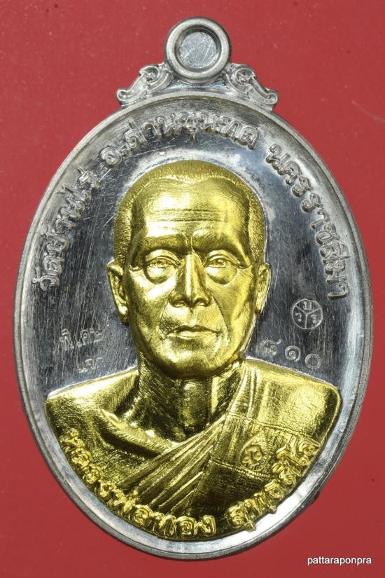 เหรียญหลวงพ่อทอง รุ่นสิริมงคลศรีนคร ปี2565 เนื้อตะกั่วหน้ากากทองฝาบาตร หมายเลข 810 |