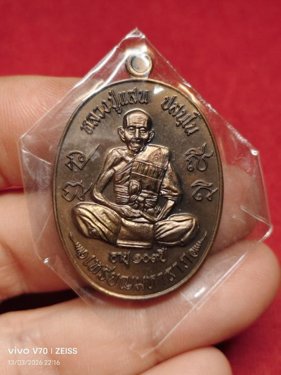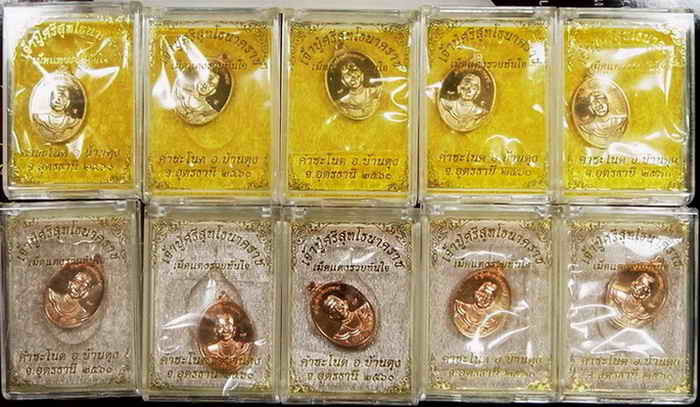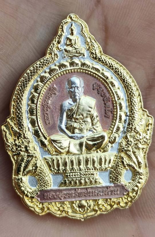 เหรียญนั่งพาน รุ่น"ทองสุขทรัพย์แสนล้าน"ปี62 หลวงปู่ทองสุข สุทธจิตโต วัดบ้านโนนสะแบง จ.ศรีสะเกษ เนื้อ 3K หมายเลข ๒๙๕ พร้อมกล่อง สวยๆเลยคับ