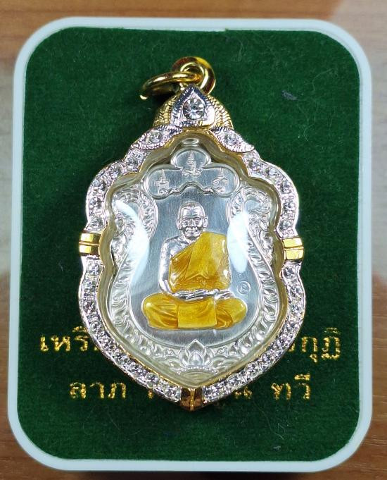 เหรียญหลวงปู่ศิลา(มหาศิลา)เสมาฉลองกุฏิ เนื้อเงินลงยาจีวร เลี่ยมกันน้ำพร้อมกรอบอิตาลีมาพร้อมกล่องเดิม หมายเลข 755 |
