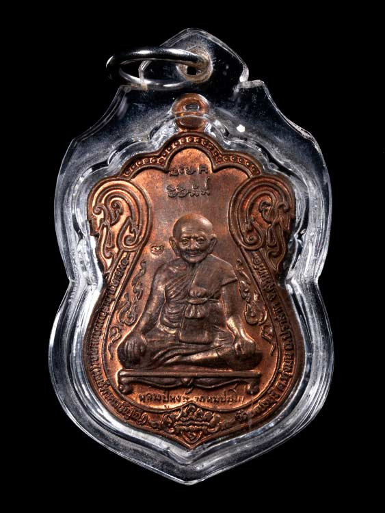 เหรียญรุ่นอายุวัฒนมงคล 81 หลวงปู่มหาศิลา พิมพ์ยืน 3 หมายเลข 3769 เนื้อทองแดง กล่องเดิม |
