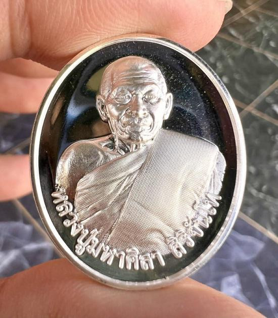 วัดความแรง 99 เหรียญย้อนยุครุ่นแรก อายุวัฒนะ84หลวงปู่ศิลา เนื้อเงินผิวกระจกคัดสวยเลข 338 พร้อมกล่องกำมะหยี่หรูๆ จอง2399 |