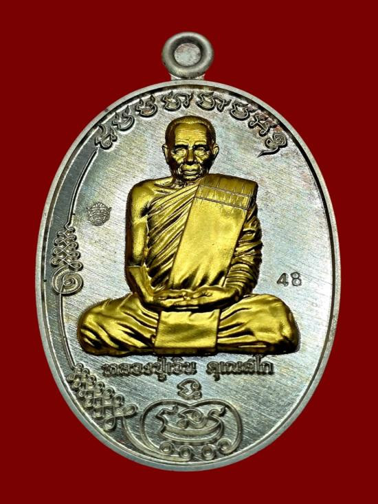 วัดใจ หลวงปู่ศิลา สิริจันโท รุ่นอายุวัฒนมงคล81 เหรียญไข่พิมพ์ย้อนยุครุ่นแรก เนื้อนวะลงยาสีแดง พร้อมกรอบชุบน้ำทอง No.471 |