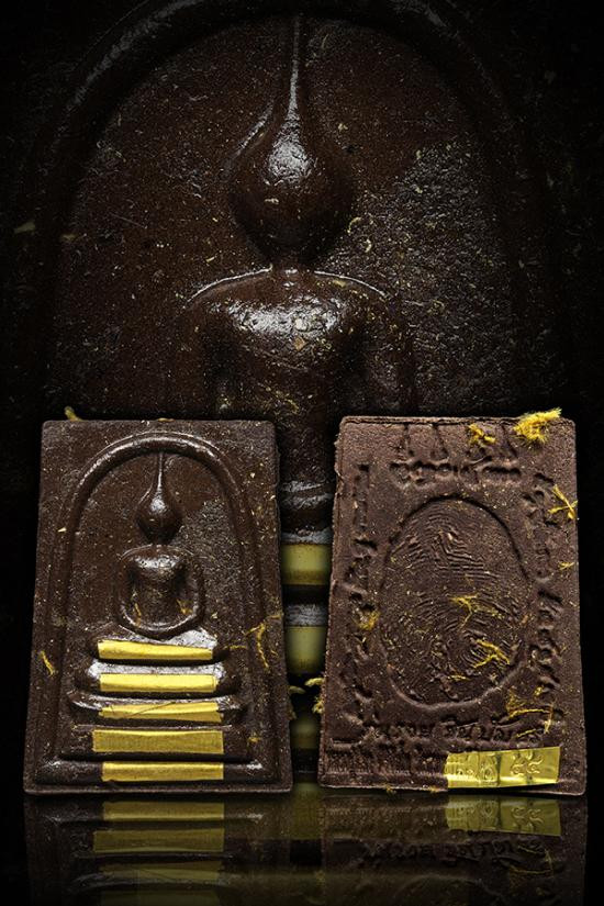 พระผงรูปเหมือนลายเสือ ผงเรียกทรัพย์ เงินไหลมา พระอาจารย์ต้อม วัดท่าสะแบง จ.ร้อยเอ็ด |