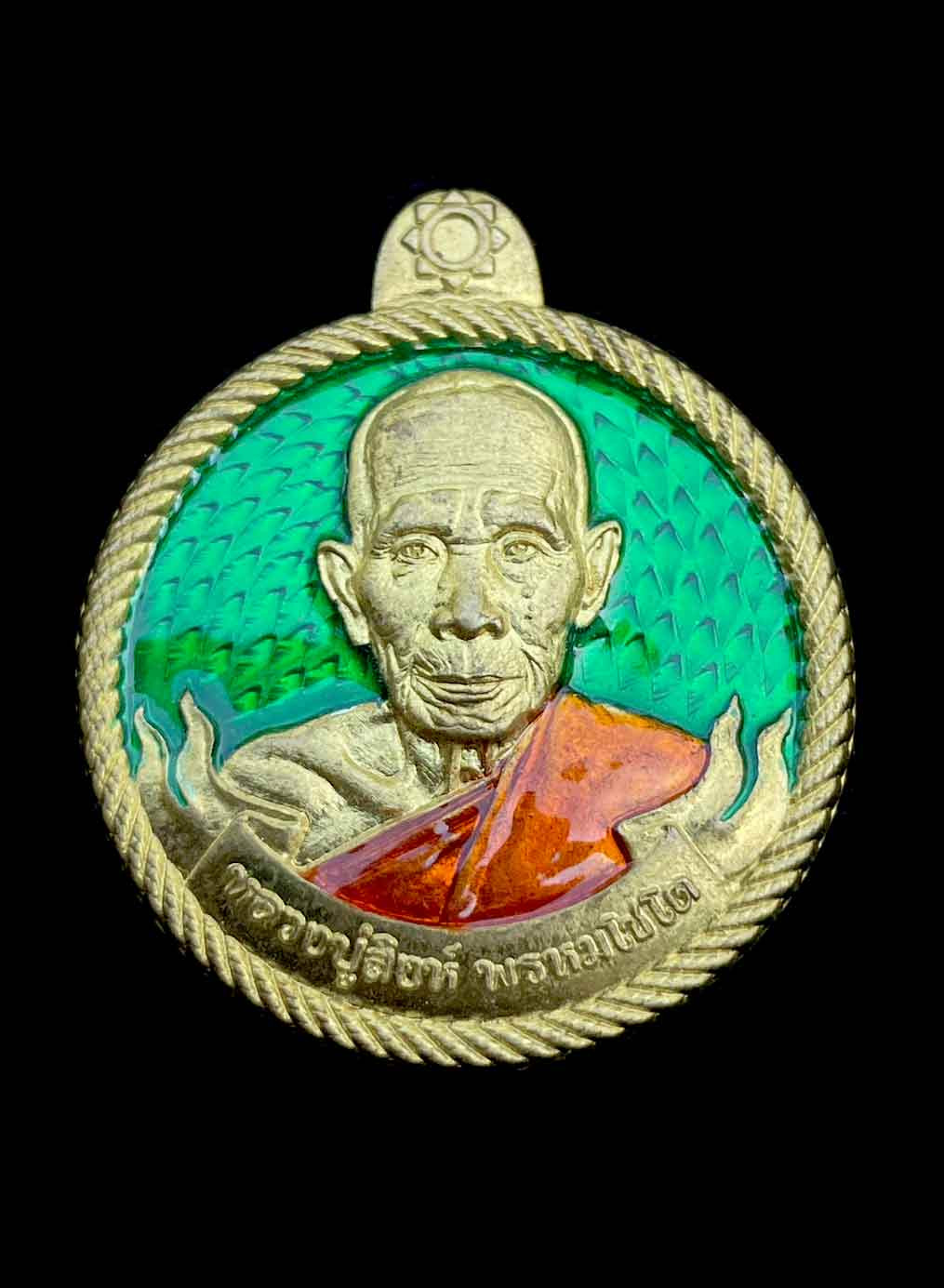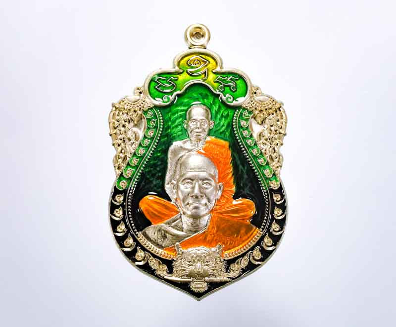 วัดใจ เหรียญหมานเงิน-หมานทอง หลวงปู่สิงห์ วัดวิชัย จ.นครพนม เนื้อทองทิพย์ ลงยาสีเขียว เลข 378 |
