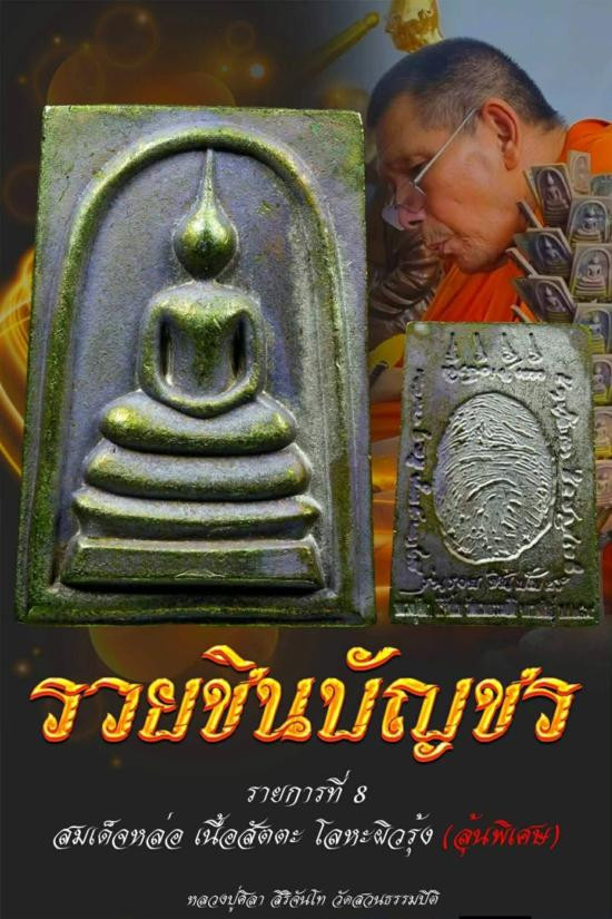 สมเด็จรวยชินบัญชร รุ่นแรก หลังลายนิ้วมือ หลวงปู่ศิลา สิริจันโท วัดสวนธรรมปิติ จ.กาฬสินธ์ุ เนื้อผงกาฝากแจกเฉพาะกรรมการเท่านั้น ฝังตะกรุดทอง 5 ดอก หมายเลข 54 สวยเดิมกล่องครบ วัดใจขายทุกราคาครับ |