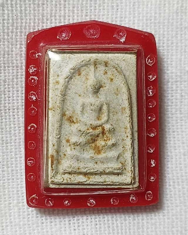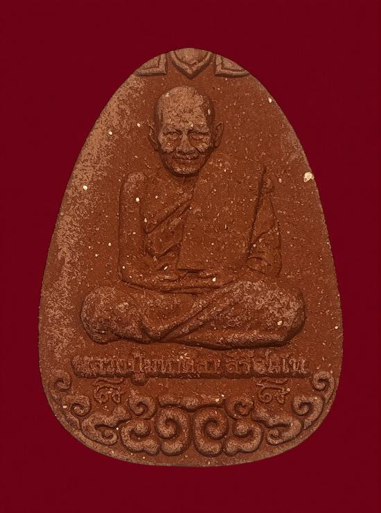 พระผงนั่งเมฆ หลวงปู่มหาศิลา สิริจันโท วัดโพธิ์ศรีสะอาด จังหวัดกาฬสินธุ์ เนื้อผงมวลสารสีแดง |