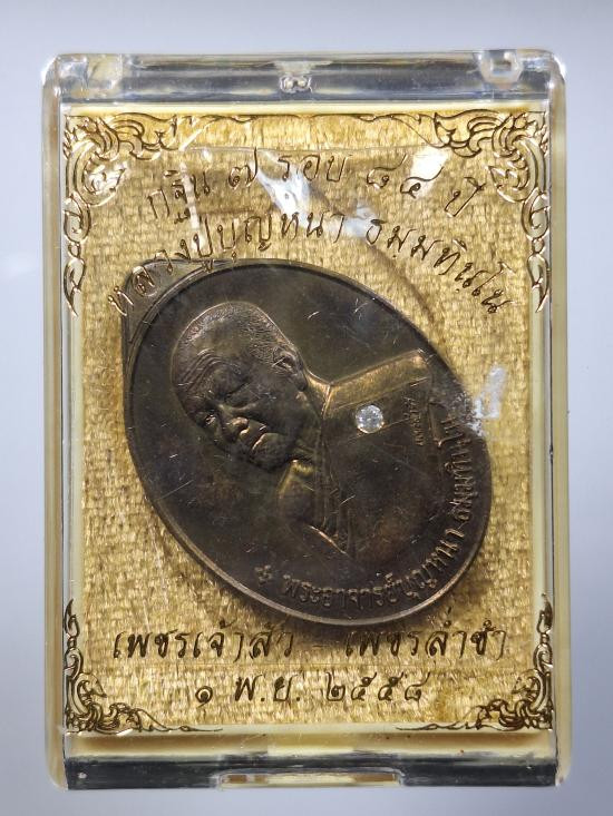 เหรียญหลวงพ่อทอง รุ่นประวัติศาตร์ไตรภาคี ปี 2558 เนื้อทองฝาบาตร หมายเลข 3458 |