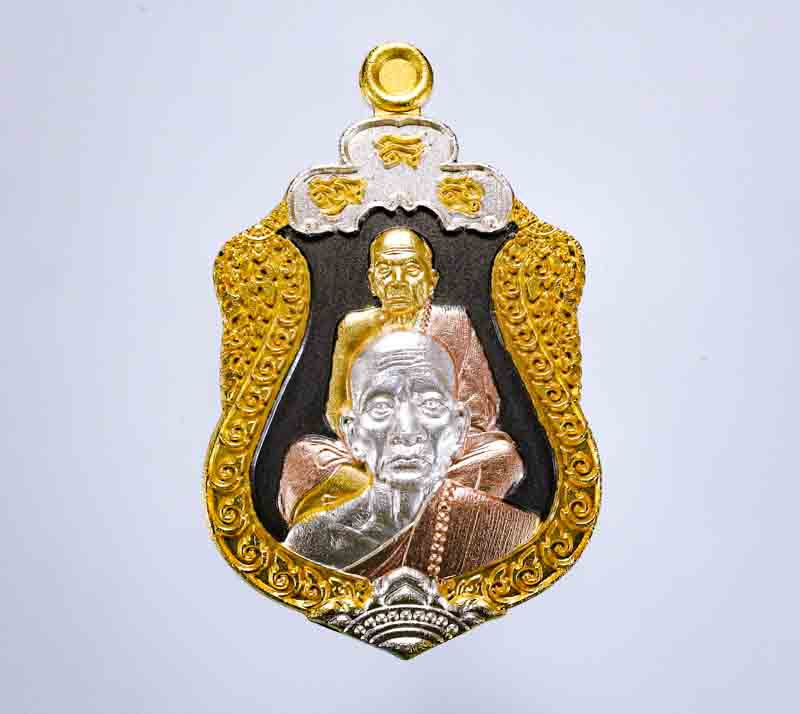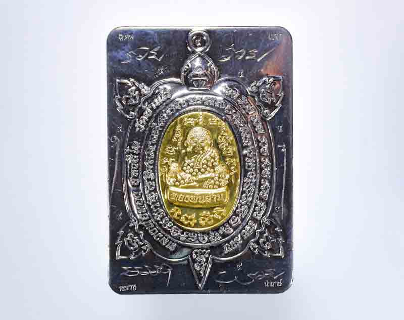 ลีอคเก็ตรุ่นโชคลาภ มหาเศรษฐี ปี2546 ขนาดโดยประมาณ ก2.2cm ส2.6cm ด้านหลังฝังตะกรุด+พลอย+พระธาตุ+เกศา+จีวร สภาพสวยเดิมๆพร้อมกล่อง |