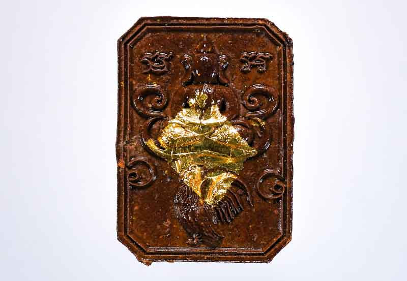 พหูรมาน หลวงปู่ศิลา เมตตาออกแบบเขียนยันต์ เนื้อทองทิพย์ฝังพลอยแดงแถมมาพร้อมเนื้อทองคำ no.359 |