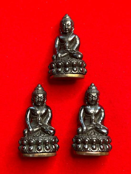 พระกริ่งจักพรรดิ์ หลวงปู่แสน วัดบ้านหนองจิก จ.ศรีสะเกษ รุ่นแสนกายสิทธิ์ เนื้อเมฆพัตร ( 1 กระดาน 3 องค์) |