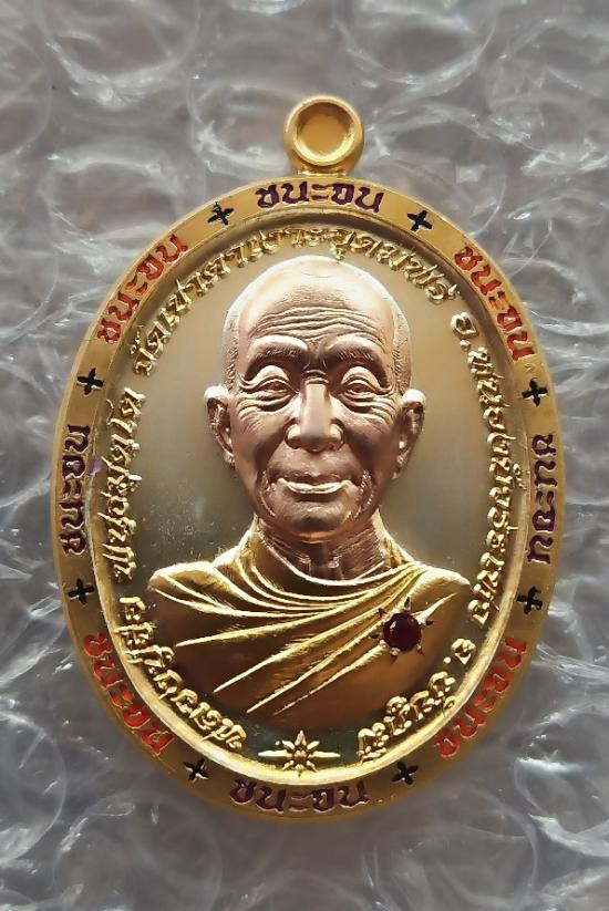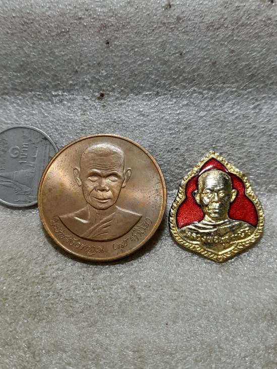 เหรียญหลวงพ่อทอง รุ่นโชคดี ปี 2566 เนื้อเนื้อกะไหล่ทอง มีจารหลวงพ่อทอง หมายเลข 135 |