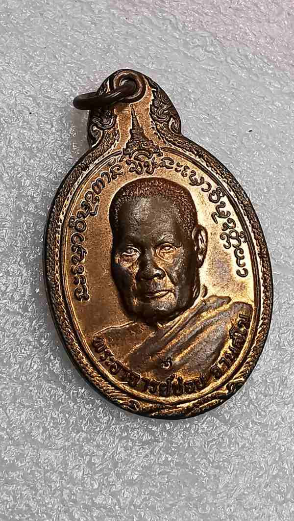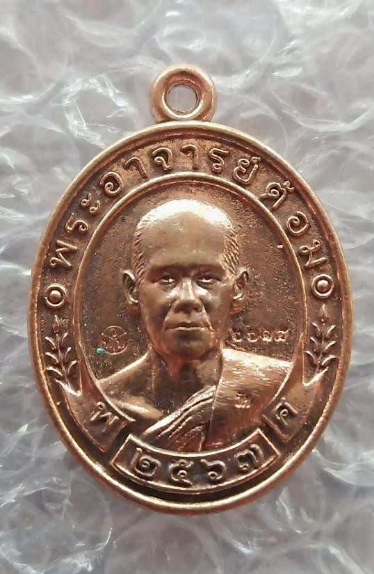 เหรียญหลวงพ่อทอง รุ่นบูชาครู ปี 2564 เนื้อทองฝาบาตร หมายเลข 636 |