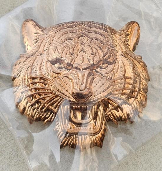 เหรียญหัวเสือหรือหน้าเสือ เนื้อทองแดง พร้อมกล่องเดิม ๆ เสือนอนกิน อ.ต้อม วัดท่าสะแบง |