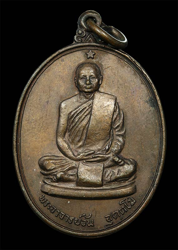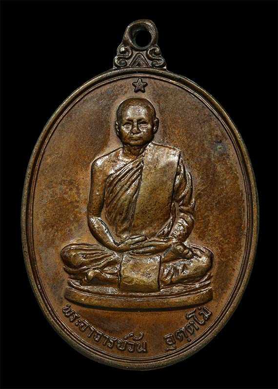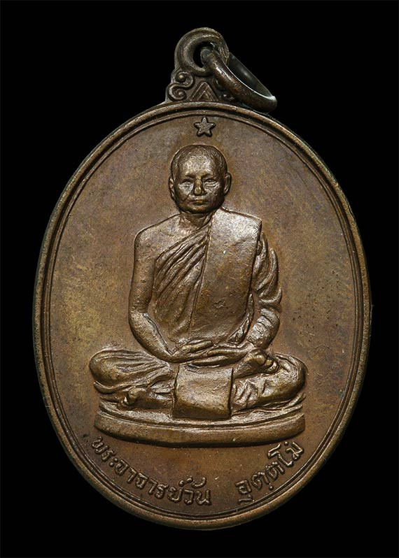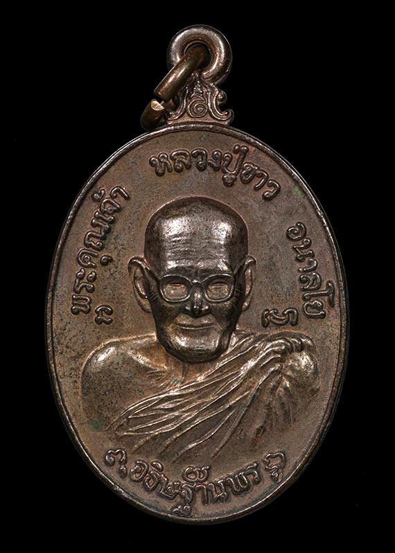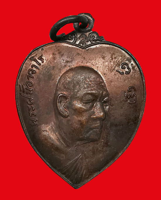 เหรียญรุ่นที่ 119 "เหรียญรูปหัวใจ" ปี 2519 พระอาจารย์ฝั้น อาจาโร (ธนาคารกรุงเทพ สาขาสกลนคร สร้างถวาย) |