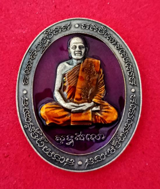 หลวงพ่อทอง วัดบ้านไร่ เหรียญรุ่น 5 แชะ เนื้อเงินรมซาติน ลงยาม่วง ลงยาจีวร NO.๒๙๑ |