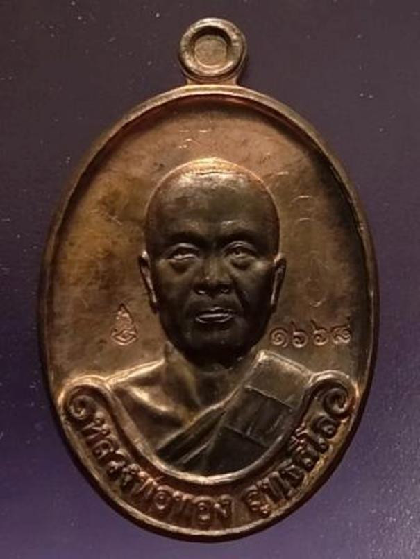 เคาะเดียวแดง.....เหรียญหลวงปู่หงษ์ หลังโฮโลแกรม 3 มิติ รุ่นทรัพย์มงคล สุสานทุ่งมน จ.สุรินทร์ ปี 2543 |