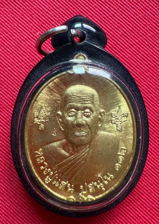 100...เหรียญหลวงปู่แสน วัดบ้านหนองจิก จ. ศรีสะเกษ รุ่นแสนสะท้าน 3 ปี 2562 เนื้อทองฝาบาตร หมายเลข 2644 ติดสายสิญจน์ จีวร เส้นเกศา |