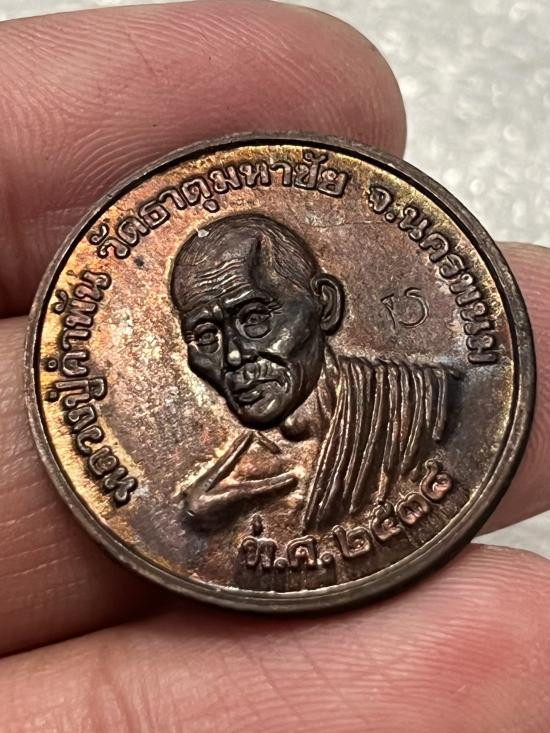 เหรียญขวัญถุง หลวงปู่คำพันธ์ วัดธาตุมหาชัย นครพนม ปี2538 ตอกโค๊ดชัดเจน ผิวไฟ |