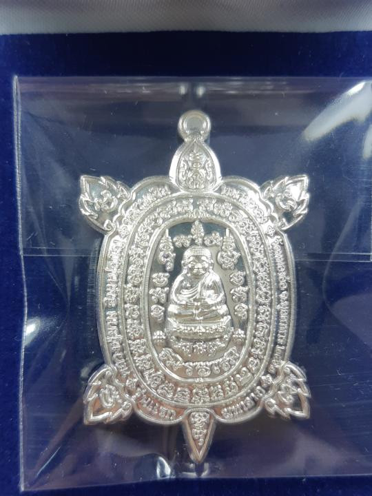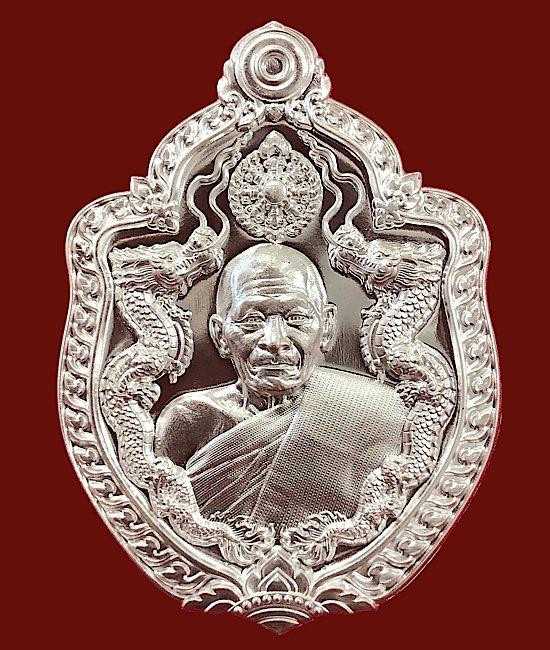 หลวงปู่มหาศิลา อายุวัฒนะมงคล81 มังกรคู่ เนื้อเงินผิวกระจกใสวิ้งๆ จมูก100 เลข106กล่องเดิม คัดสวยๆ |