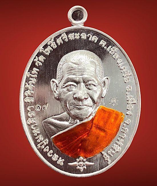 วัดใจไปเลย เหรียญมหาโภคทรัพย์หลวงปู่แสน วัดบ้านหนองจิก จ.ศรีสะเกษ ปี 2560 เนื้อทองแดงหน้ากากเงิน หมายเลข 60 |