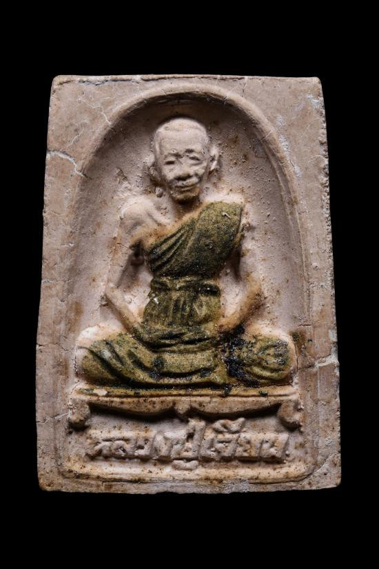 พระผงรูปเหมือนรุ่นแรกหลวงปู่เจียม อติสโย เนื้อลองพิมพ์หลังปั้มตรา จ.จาน ปี2537 |
