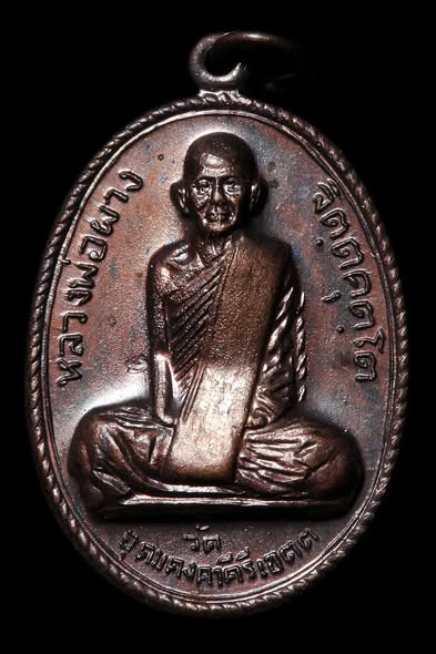 เหรียญหลวงพ่อผางวัดอุดมคงคาคีรีเขต จ.ขอนแก่น รุ่นแรก พ.ศ.๒๕๑๒ เนื้อทองแดง เลี่ยมพลาสติก |