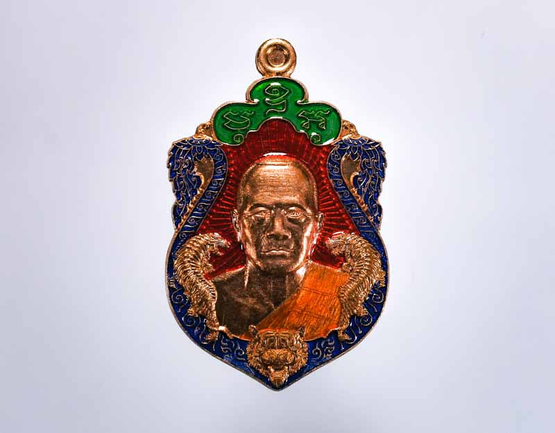 พระอาจารย์ต้อม วัดท่าสะแบง จ.ร้อยเอ็ด รุ่นรวยนะ9ดี เหรียญหล่อหน้าเสือหลังยันต์ |