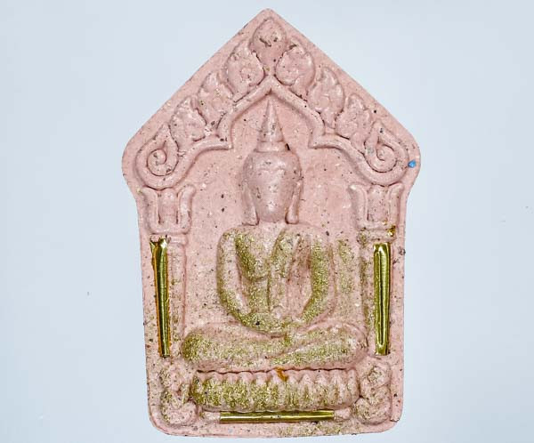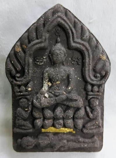 พระปรกใบมะขามรุ่นแรกหลวงปู่ชอบ ฐานสโม ปี ๒๕๓๓ เนื้อทองแดง |