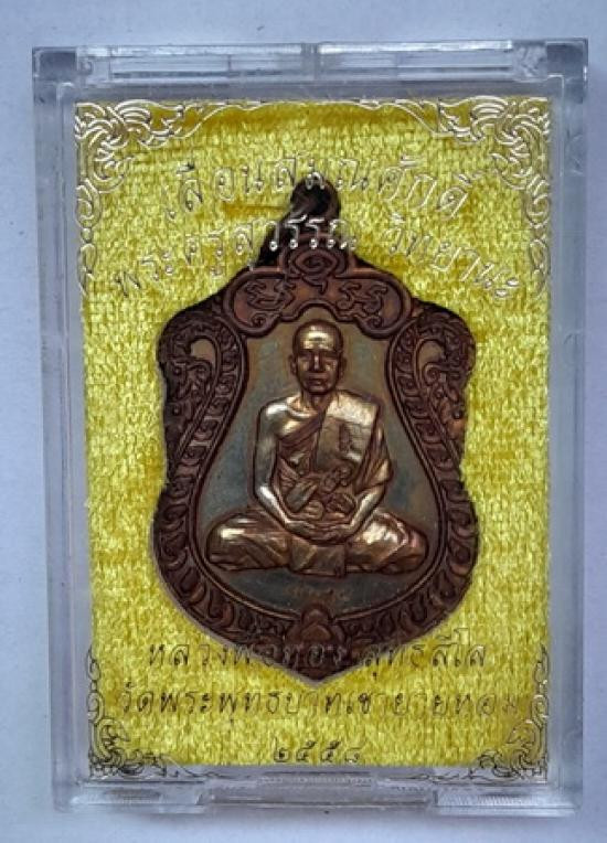 เหรียญหลวงพ่อทอง รุ่นตอก1 ปี 2562 เนื้อทองฝาบาตร หมายเลข 889 |