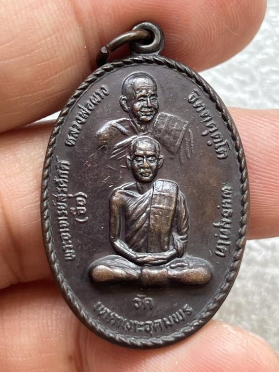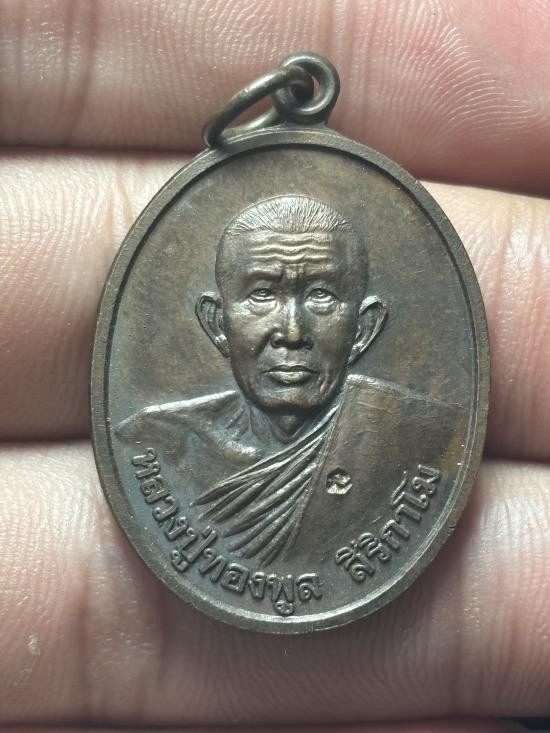 เหรียญเลื่อนสมณศักดิ์ หลวงพ่อทอง วัดพระพุทธบาทเขายายหอม จ.ชัยภูมิ เนื้อทองแดงรมมันปู |