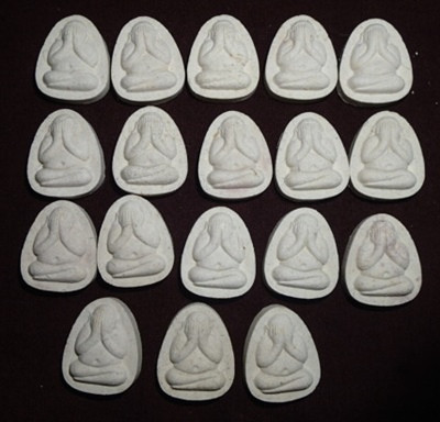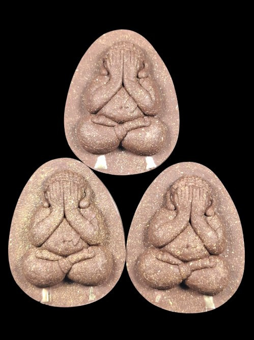 หลวงปู่ทวด หลวงปู่ศิลา เมตตาอธิษฐานจิต วัดโพธิ์ศรีสะอาด รุ่นปาฎิหาริย์ พิมพ์พระรอด เนื้อผงว่าน108 ปัดทอง 3 องค์ |