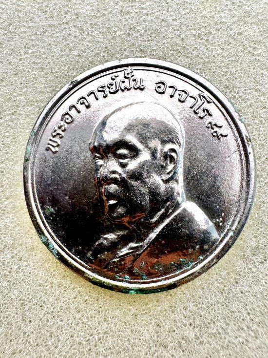 เหรียญรุ่นที่ 101 หลวงปู่ฝั้น อาจาโร สถานีตำรวจภูธร อำเภอเมืองสกลนคร สร้างแจกเมื่อ 13 ตุลาคม 2519 เรียกกันว่ารุ่น อาจาโร99 เนื้ออัลปาก้า ชุบนิเกิ้ล จำนวนการสร้างน้อยมาก |