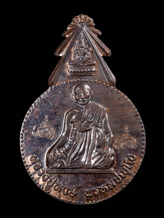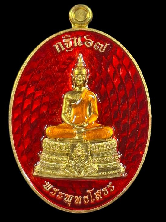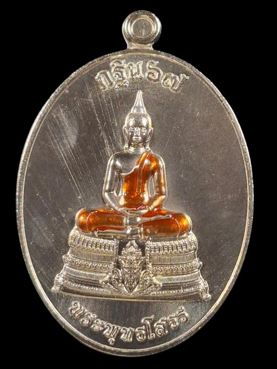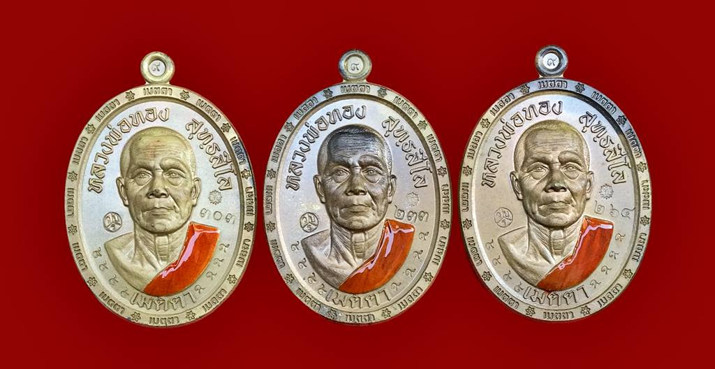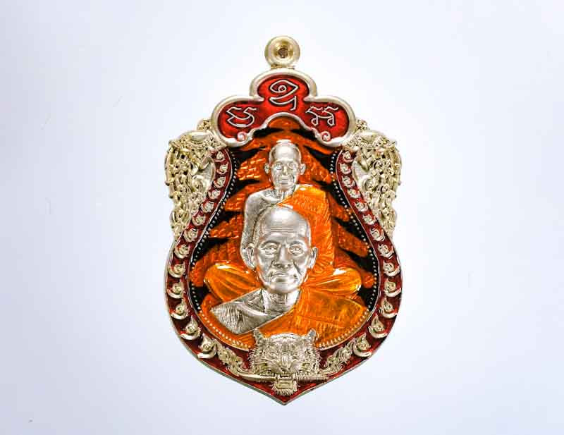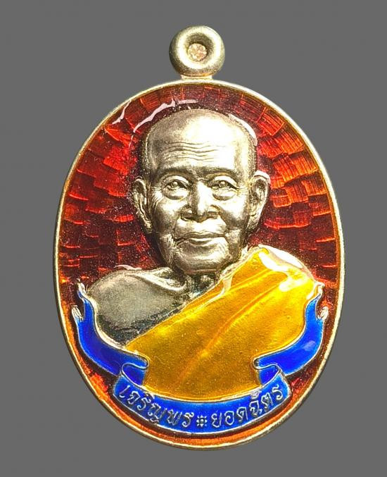 **100** เหรียญเจริญพรยอดฉัตร หลวงปู่เกลี้ยง เนื้อเงินลงยาแดง หมายเลขตัวเดียว |