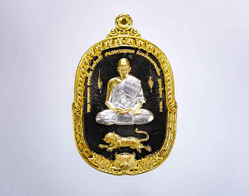 เหรียญรูปเหมือน นั่งเสือเผ่น รุ่น 1 เนื้อตะกั่วเถื่อน พ.ศ. 2534 หลวงปู่นิล วัดครบุรี จ.นครราชสีมา |