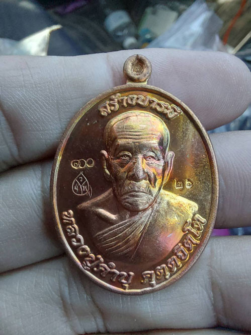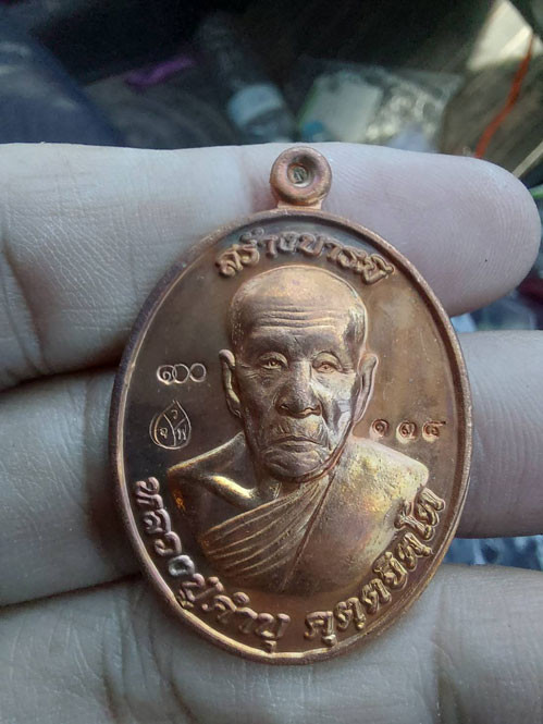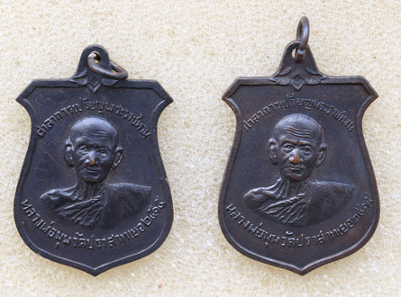 เหรียญรุ่นแรก เนื้อทองระฆัง หลวงพ่อทอง วัดพระพุทธบาทเขายายหอม จ.ชัยภูมิ ปี 2554 |