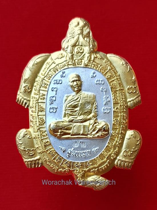 เคาะแรก!! เหรียญเต่ามังกร รุ่นแรก หลวงปู่หา สุภโร หรือ หลวงปู่ไดโนเสาร์ วัดสักกะวัน จ.กาฬสินธุ์ ปี ๖๒ เนื้อชุบสองกษัตริย์ ตอกโค้ด สังฆาฏิ เลข ๗๒ เลขสองหลัก สวยเดิม พร้อมกล่องเดิม |
