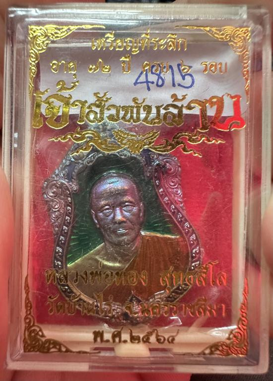 หลวงพ่อทอง รุ่นบารมี ปี 55 (รุ่น2) เนื้อฝาบาตร วัดพระพุทธบาทเขายายหอม จ.ชัยภูมิ ปี55 |