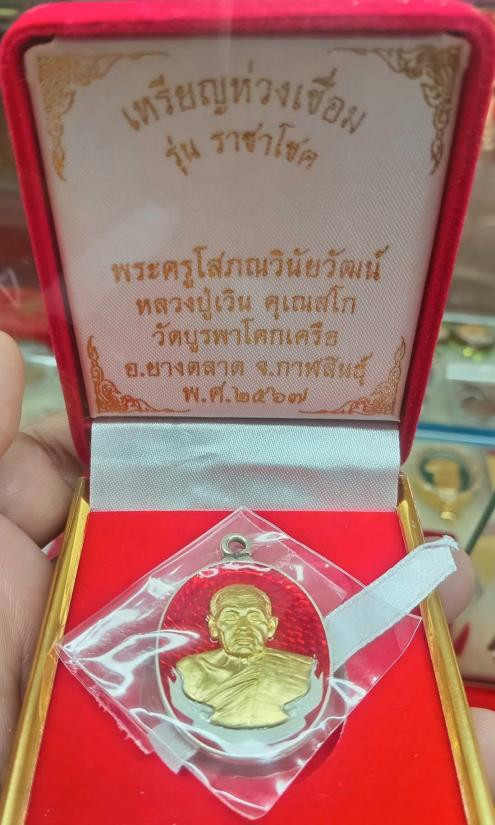 *** วัดใจเคาะเดียวแดง *** เหรียญยอดฉัตร เนื้อเงินหน้ากากทอง หลวงปู่หงษ์ พรหมปัญ |