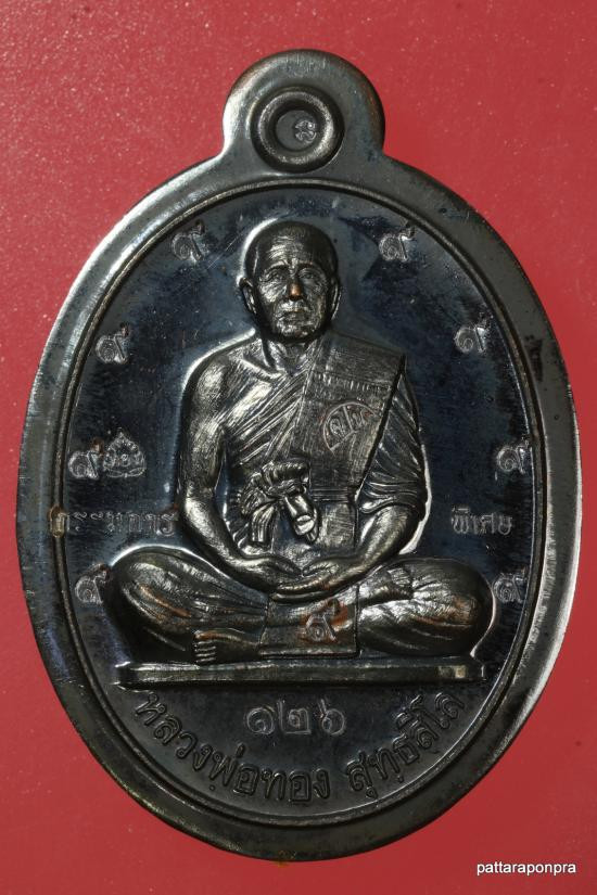 เหรียญเต็มองค์ หลวงพ่อทอง รุ่นสร้างบารมี ปี 2560 เนื้อทองแดงไม่ตัดปีก กรรมการ ๙ รอบ หมายเลข 126 |
