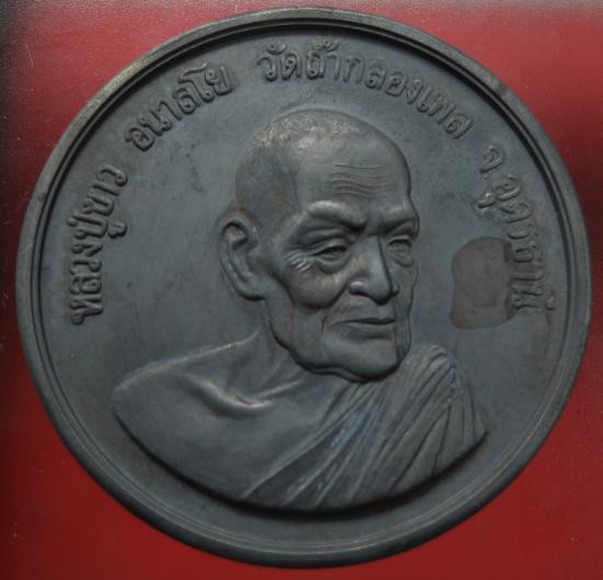 เหรียญหล่อจอบใหญ่ ล.ป.ญาท่านสวน วัดนาอุดม เนื้อฆ้องโบราณ รุ่นแซซยิค๘๘ ปี40 กล่องเดิม |