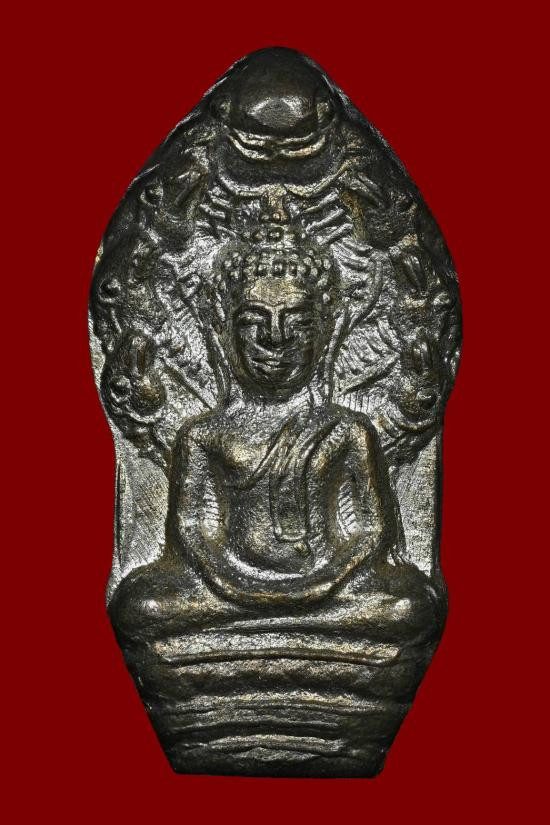 พระสมเด็จรุ่นแรก หลังปรกเหล็กกล้า เนื้อเงิน เคาะเดียวแดง |
