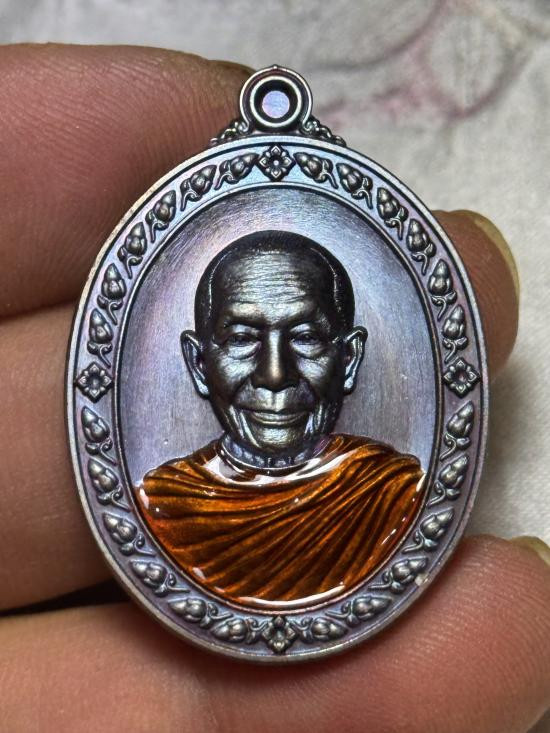 -วัดใจเคาะเดียวแดง-เหรียญสิวลีเจ้าทรัพย์เนื้อนวะหน้ากากเงินลงยาพื้นส้มลงยาจีวร หลวงปู่จื่อ วัดเขาตาเงาะ จ.ชัยภูมิ ปี 67 สร้าง 50 เหรียญ หมายเลข 39 |
