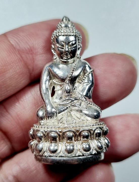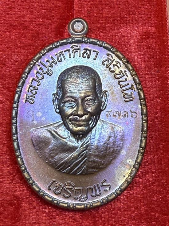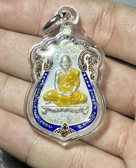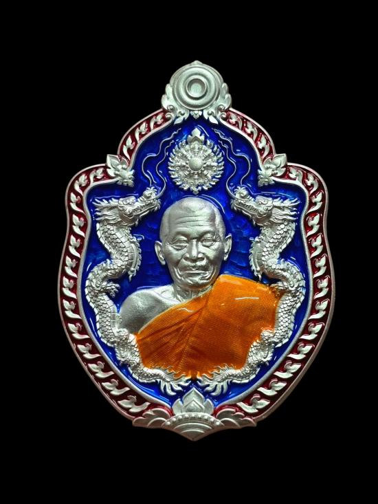 หลวงปู่มหาศิลา หลวงปู่ศิลา รุ่นอายุวัฒนมงคล พิมยืน เนื้อเงินลงยาจีวร เบอร์ 161 |