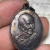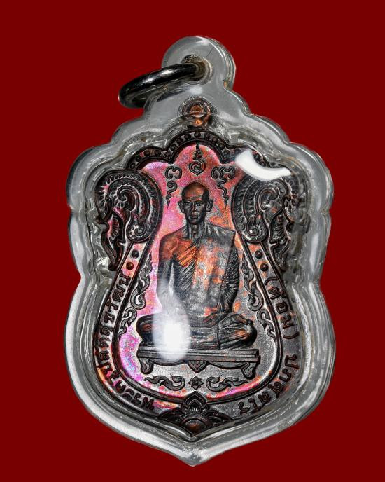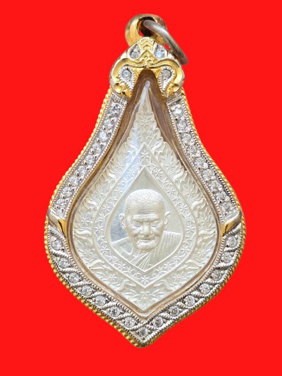 รูปเหมือนปั๊มครึ่งซีก เนื้อนวะโลหะหลังแผ่นเงิน (มีจาร) หลวงปู่คำบุ วัดกุดชมพู จ.อุบลฯ หมายเลข ๑๗ พร้อมเลี่ยมกันน้ำ |