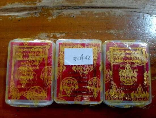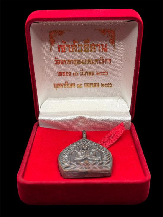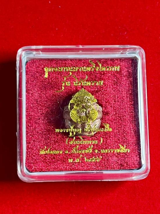 พระอาจารย์ต้อม วัดท่าสะแบง จ.ร้อยเอ็ด รุ่นรวยนะ9ดี พิมพ์เสือคู่บารมี ( เนื้อเงินลงยาแดงฝังพลอยเขียว ) No.126 พร้อมกล่องเดิม |